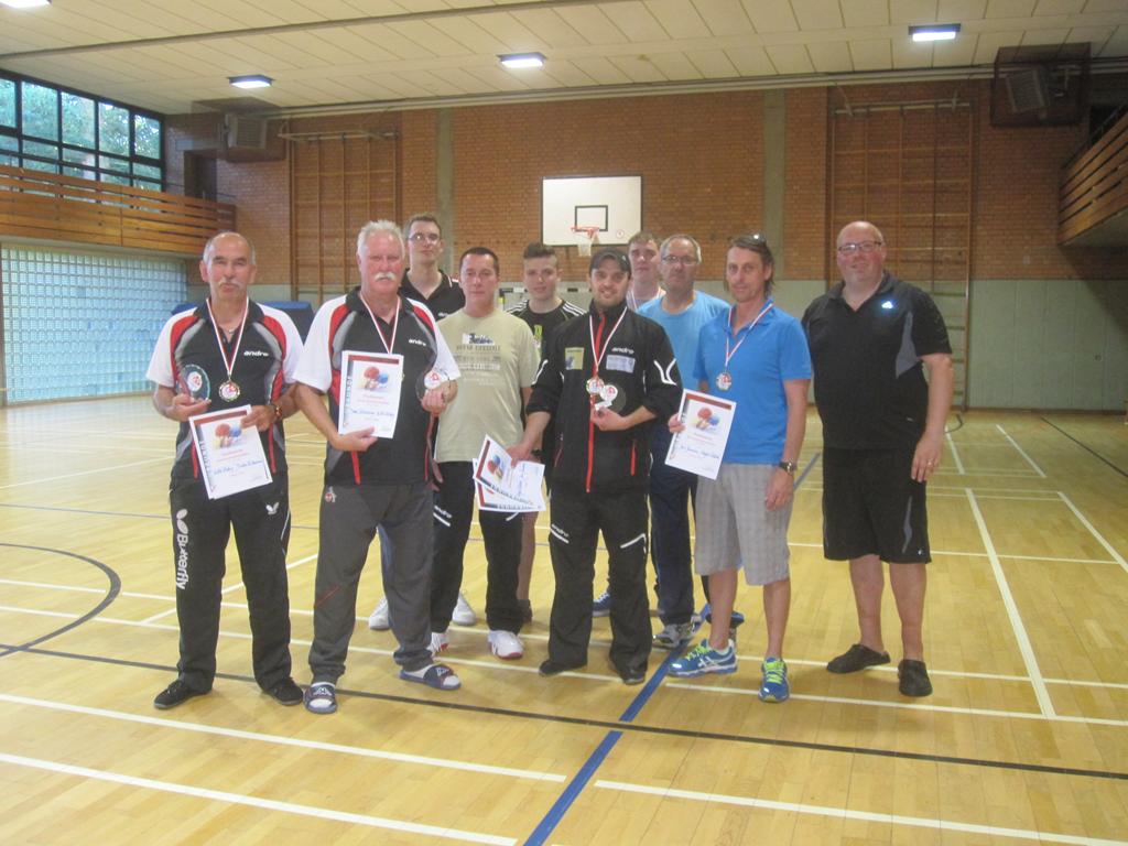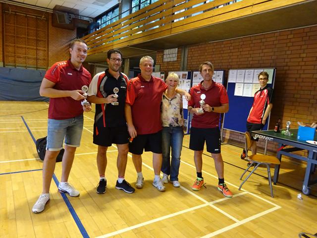 (vlnr: Platz 3: Birthe + Lasse von Jagow, Platz 2: Stefan + Tiberius Neuenhofen, Platz 3: Heinz Schmitz + John Dado, Platz 1: Klaus Puschmann + Max Barth