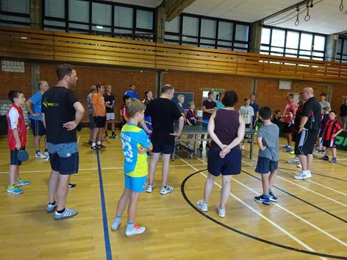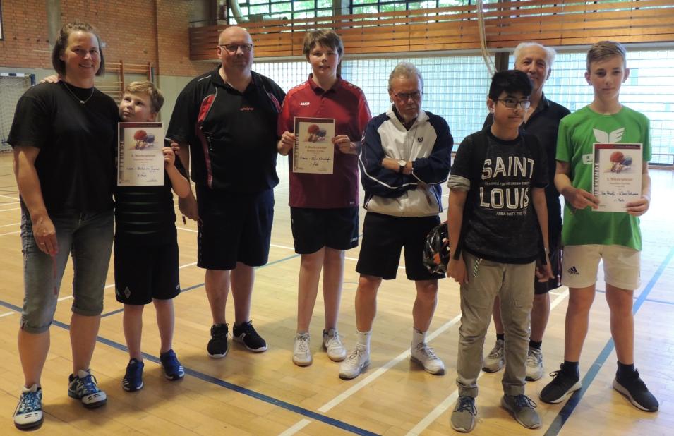 Zum ersten Mal hatte am vergangenen Sonntag die Tischtennisabteilung des TuS Niederpleis zum Familienturnier geladen. Vater mit Kind oder Mutter mit Kind spielten in einem Doppelturnier mit Einheitsschlägern um die Medaillen. 16 Familien waren am Start, von der Bank gab es lautstarke Unterstützung. Nach der Vorrunde gab es zunächst eine gesellige Pause. Es gab Würstchen vom Grill und leckere Salate, die als Turnierbeitrag gespendet worden waren. Danach wurden die Finalisten ermittelt.