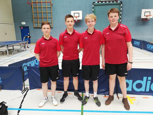 vlnr: Nick Gartzke, Ian Michalski, Lasse von Jagow, Jugendbetreuer Heinz Schmitz, Max Barth, Philipp Schubert