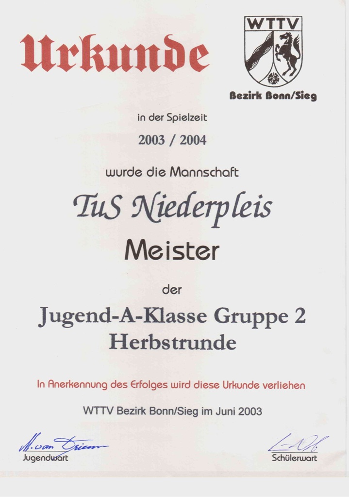 •  TischTennisFreunde Niederpleis  •  Tischtennisabteilung des TuS Niederpleis   •