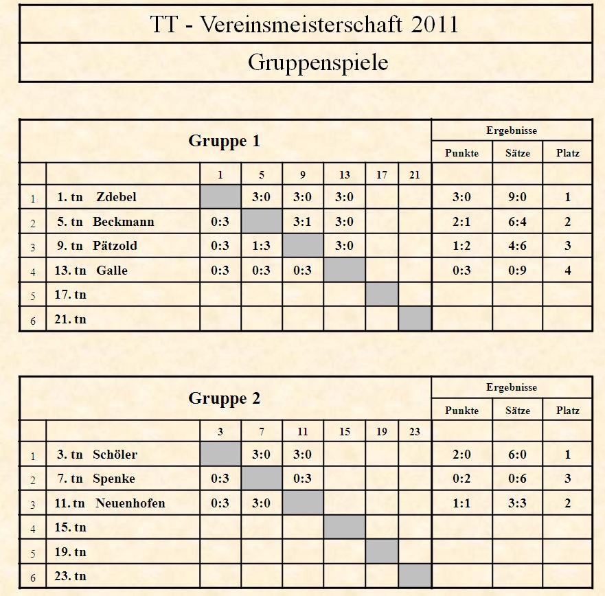 Spielplan der Vereinsmeisterschaften 18-06-2011